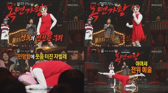 MBC 예능프로그램 ‘복면가왕’에서는 지난 30일 영희가 출연해 남다른 가창력을 선보였다. 이때 그는 개인기 시간에도 익살스러운 모습을 보여 시선을 집중시켰다.