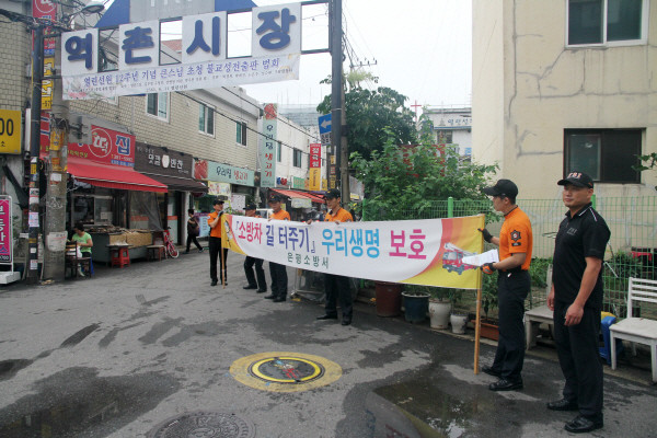 은평소방서, 역촌중앙시장서 소방차 길 터주기 훈련