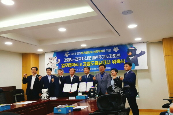 또한 기초단체장(김우영 서울 은평구청장), 광역의원(천영미 경기도의원), 기초의원(천성주 인천 서구의원) 등 3명을 오는 2019년 7월24일까지 2년간 홍보대사로 위촉함으로써 평창 동계 올림픽의 홍보 및 문화관광의 활성화를 위해 노력하며, 강원도의 이미지 향상을 위해 노력하도록 했다.