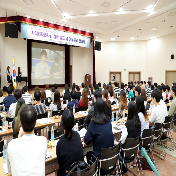 최근 양천구가 대학생 아르바이트생들의 근무종료 행사와 함께 아르바이트 학생들의 지역디자인사업 결과발표회를 개최했다. 사진은 간담회 진행 모습.(사진제공=양천구청)