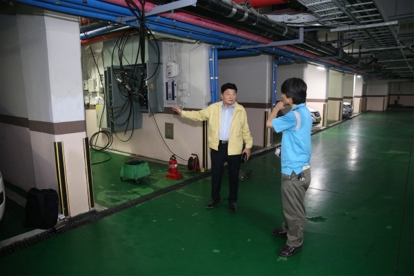 이날 홍 의원은 아파트 관리실 관계자 등과 현장을 점검하며 “인명 피해가 없어 다행”이라고 밝혔다.