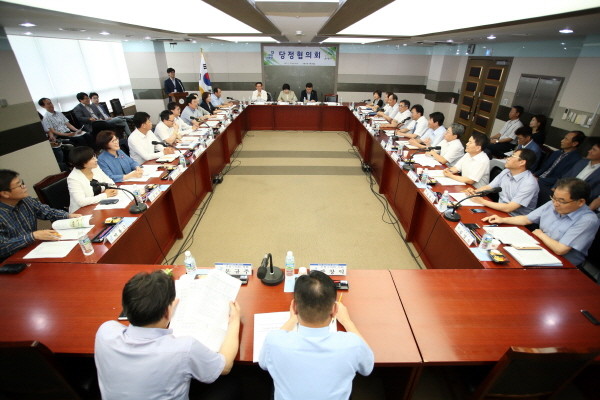 은평구가 최근 구청 기획상황실에서 새 정부 출범에 따른 국정기조의 공유와 이해의 장을 마련하고 당정 간 공감대 형성과 협력체계를 강화하기 위해 당정협의회를 개최했다. 사진은 회의 진행 모습.(사진제공=은평구청)