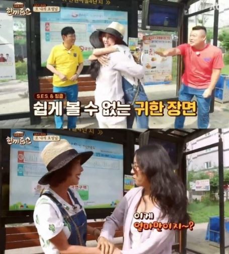 지난 2일 방송된 JTBC 예능프로그램 '한끼줍쇼'에서 90년대 원조요정 핑클의 이효리와 S.E.S의 슈가 만나는 모습이 그려졌다.