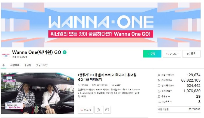 지난 7월 6일 개설된 '워너원고' 공식 채널은 뜨거운 관심을 받으며 데뷔를 앞둔 워너원 멤버들의 인기를 실감케 했다.