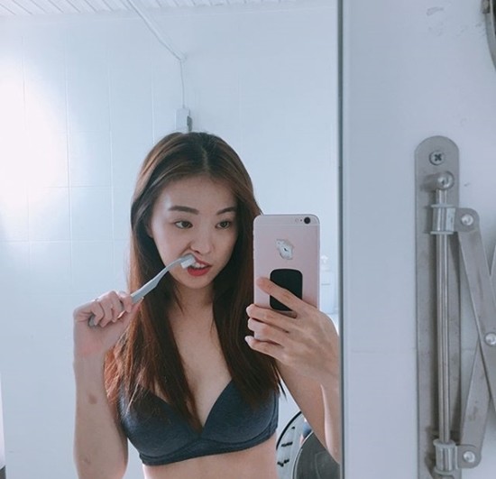 사진 속에는 양치질을 하며 거울 셀카를 찍은 '외모지상주의' 실제 모델 하늘의 모습이 담겨 있다. 특히 굴욕없는 완벽한 민낯 미모가 감탄을 자아낸다.