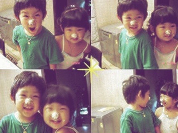 사진 속 최환희와 최준희는 코에 생크림을 묻힌 채 장난스러운 얼굴을 하고 있다.