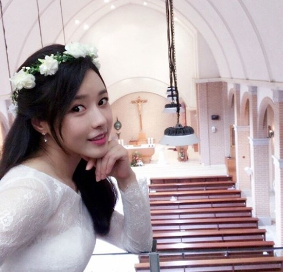 사진 속에는 오지은이 순백의 웨딩드레스를 입은 채 카메라를 향해 미소짓고 있는 모습이다.