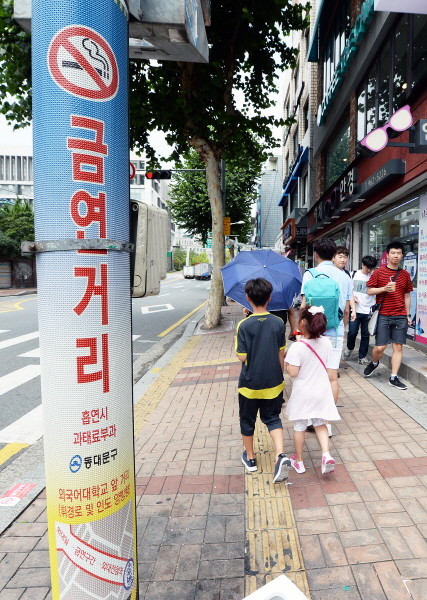 금연거리에서 보행 중 흡연금지