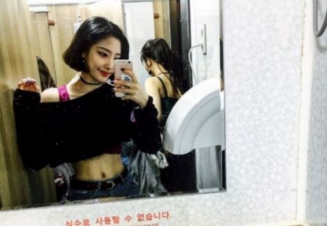 사진 속 그는 거울에 비친 자신의 모습을 카메라에 담고있으며 크롭티를 입고 완벽한 11자 복근과 잘록한 허리를 공개해 눈길을 끌었다.