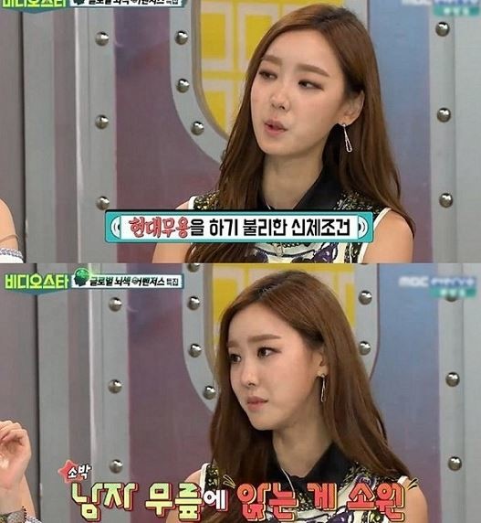 이날 방송에서 그는 "남들보다 꼬리뼈가 길어 현대무용을 포기하게됐다"며 "남자 무릎에 앉는게 소원"이라고 밝혀 이목을 집중시켰다.