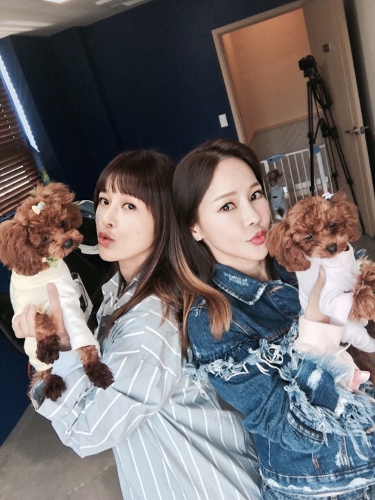사진 속 두 사람은 강아지를 안고 화사한 미모를 뽐내고 있다.