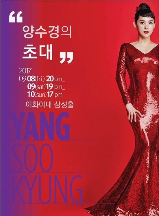 양수경의 소속사 측은 9일 "오는 9월 9일, 10일 양일간 이화여자대학교 삼성홀에서 개최 예정인 양수경 2017 콘서트 '초대' 티켓이 매진되면서 9월 8일 오후 8시 1회 추가공연을 확정하고 지난 8일 오후 4시 티켓이 오픈 됐다"라고 밝혔다.