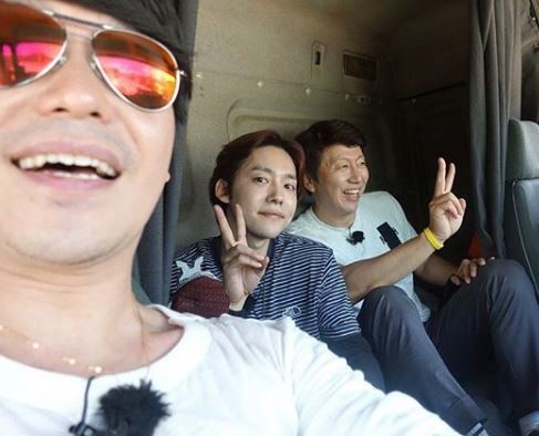 게재된 사진 속 김진우는 배우 김수로, 엄기준 사이에서 화장기 없는 민낯을 한 채 브이 포즈를 취하고 있어 눈길을 끌었다.
