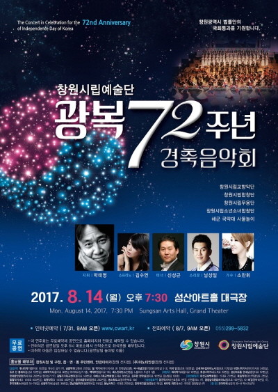 동서양의 수준 높은 작품과 국내 정상급 예술가와 함께 하는 창원시립예술단의 광복음악회는 뜨거운 여름 밤, 시민들에게 웅장한 무대와 깊은 감동을 안겨주게 될 것이다.