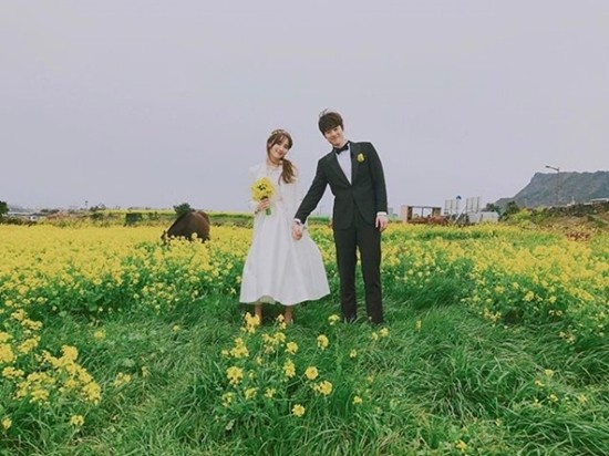 정혜성은 과거 자신의 인스타그램에 "우리들의 제주 #우리결혼했어요 #거참신부가예쁘네"라는 글과 함께 사진을 게재했다.