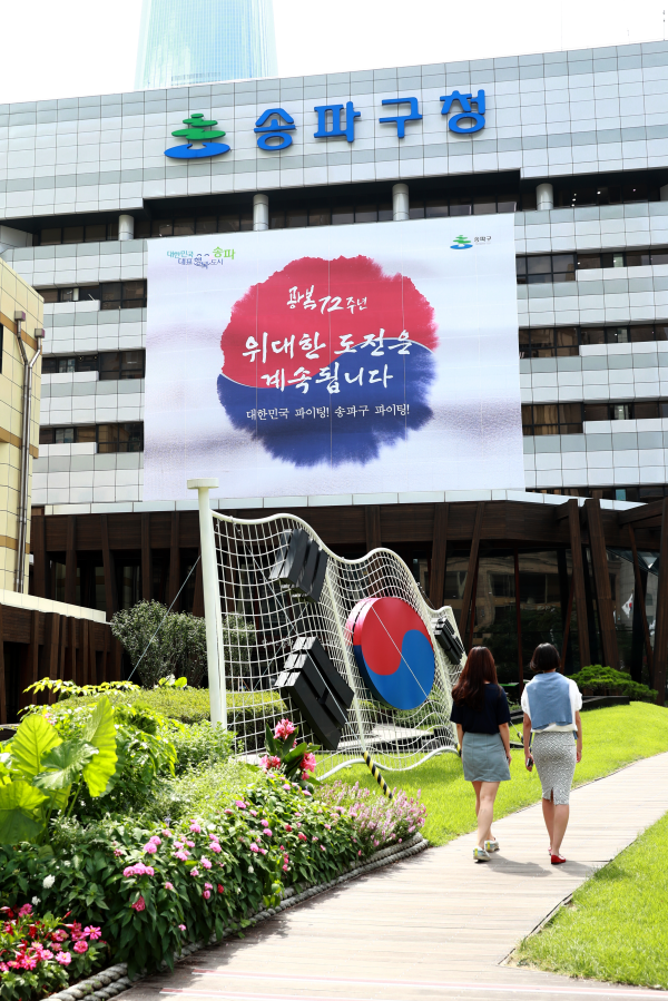 송파구, 구청사 외벽에 광복 72주년 기념 현수막 걸어