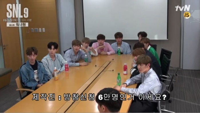 워너원은 SNL9 방송출연을 위해 지난 8월 3일 SNL9 회의실에 등장했다.