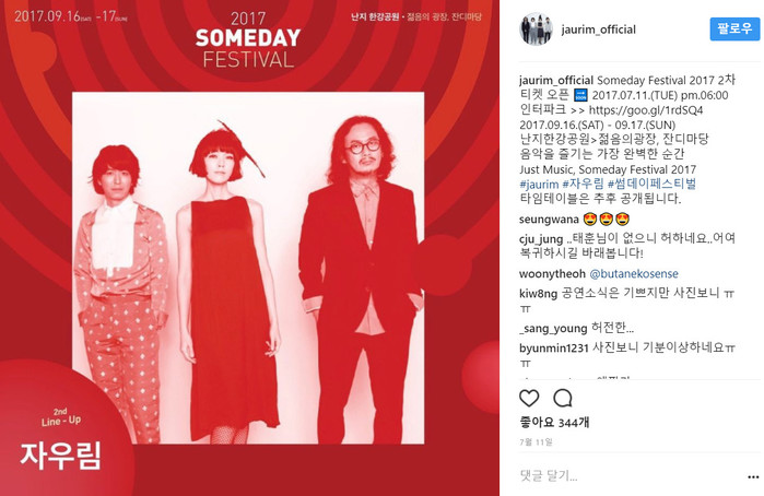 11일 자우림은 자신의 SNS에 "Someday Festival 2017 2차 티켓 오픈"이라는 글과 함께 한 장의 사진을 게재했다.