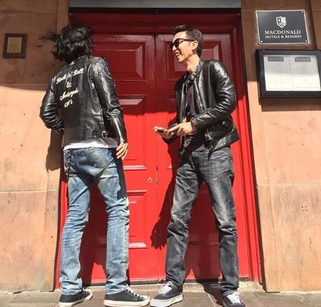 게재된 사진 속 두 사람은 라이더 자켓과 청바지를 입은 '트윈룩'을 입고 환한 웃음을 터뜨리고 있어 보는 이들의 미소를 자아냈다.