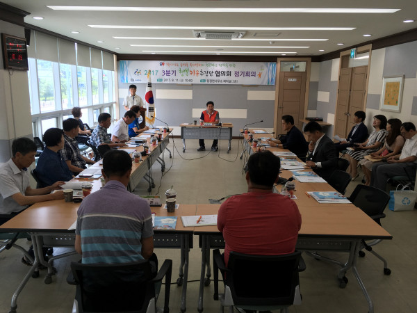 충남 아산시는 지난 11일 탕정면사무소 회의실에서 읍·면·동 행복키움추진단협의회 단장 17명이 참석한 가운데 2017년 3분기 정기회의 및 읍·면·동 찾아가는 복지센터사업 안착을 위한 간담회를 개최했다.(사진제공=아산시청)