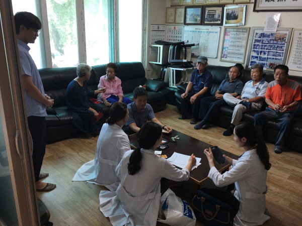 경기 동두천시 상패동주민센터에서는 지난 11일 지역내 무더위 쉼터 5곳을 방문해 폭염으로 열사병에 노출되기 쉬운 노인들의 안부를 챙겼다. 사진은 관계자들이 노인들에게 여름철 건강관리 요령에 대해 설명하는 모습.(사진제공=동두천시청)