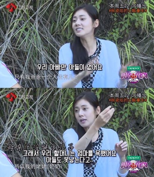 이어 그는 “삼촌들은 모두 아들이 있었는데 우리 아버지만 아들이 없었다”며 “할머니는 아들을 낳지 못한 어머니를 욕했다. 왜냐하면, 내가 아들이 아니라 딸이니까"라며 당시 착잡했던 심경을 고백했다.