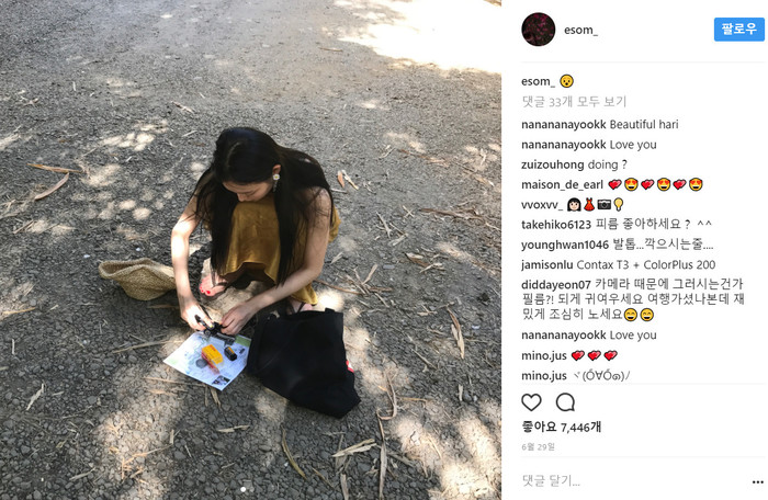 지난 6월 29일 이솜은 자신의 SNS에 바닥에 앉아 무언가에 집중하고 있는듯한 사진을 게재했다.