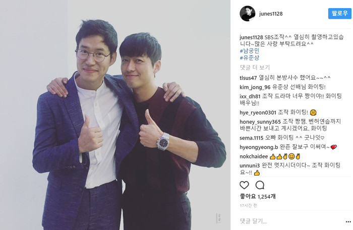 그는 공개된 사진 속에서 남궁민과 함께 카메라를 응시하며 미소를 띄우고 '엄지척'을 하고 있다.