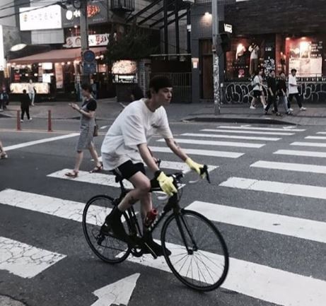 사진 속 그는 센스있는 패션을 뽐내며 자전거를 타고 거리를 활주하고 있어 눈길을 끌었다.