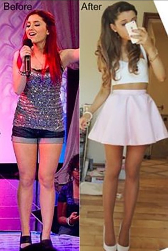 사진 속에는 아리아나 그란데가 다이어트 전 통통했던 몸매에서 다이어트 후 탄력있는 몸매로 변한 모습이 담겨있다.