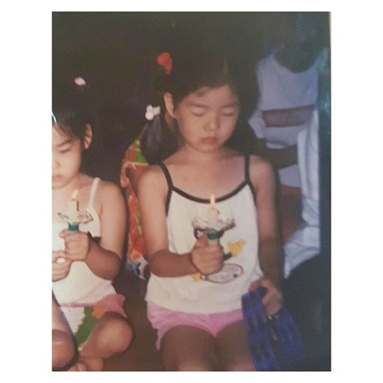 사진 속에는 지금과 변함없이 인형같은 미모를 뽐내며 눈을 감은 채 작은 양초를 들고 있는 이선빈의 어린 시절 모습이 담겨있다.