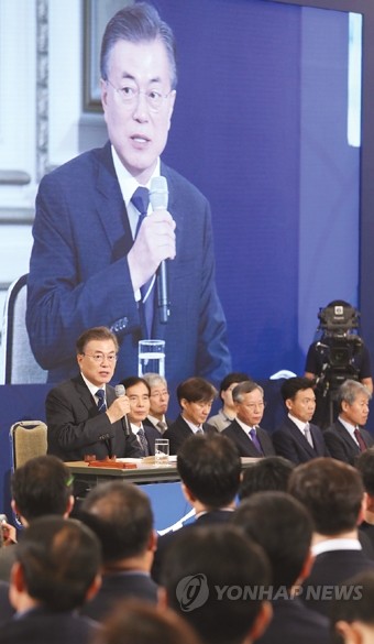 문재인 대통령이 17일 오전 취임 100일을 맞아 청와대 영빈관에서 출입기자들과 취임 후 첫 기자회견에서 질문에 답변하고 있다.