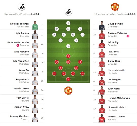 맨체스터 유나이티드는 19일 오후(한국시간) 영국 런던 리버티 스타디움에서 열린 2017-2018 EPL 2라운드 원정 경기에서 스완지시티에 4-0으로 이겼다.