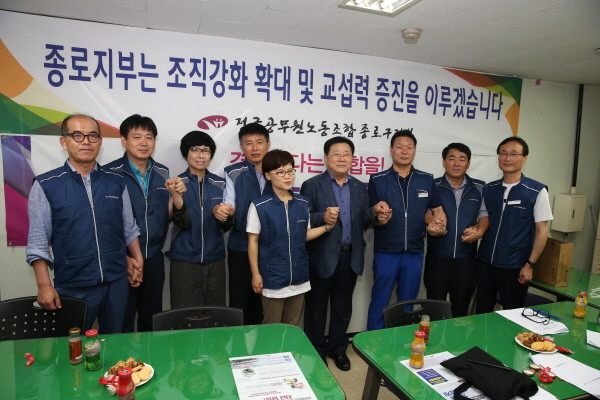 김 의장은 이날 공무원노조 사무실을 찾아 청렴한 공무원상 정립과 건전한 조직문화 조성으로 종로구 행정 선진화를 위해 애쓰고 있는 한조섭 지부장과 임원들에게 격려와 감사의 말을 전하고, 건의사항 및 애로사항 등을 청취했다.
