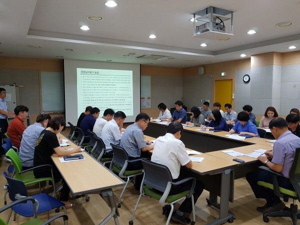 경기 김포시청소년육성재단은 지난 21일 중봉청소년수련관 세미나실에서 재단 임직원이 참석한 가운데 '2017년 김포시 출자출연기관 경영실적 평가분석 보고회'를 개최했다. 사진은 관계자들이 경영실적평가 총평을 진행 중인 모습.(사진제공=김포시청)