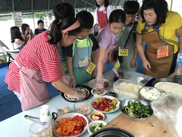 인천 연수구 선학동 주민자치센터는 최근 충남 당진에서 초등학생 30명을 대상으로 화덕피자 체험, 뜰과 숲 농원 현장체험학습을 진행했다. 사진은 학생들이 피자를 만드는 모습.(사진제공=연수구청)