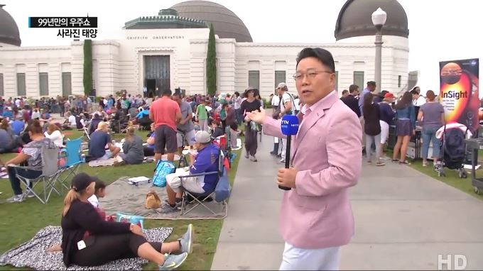 영화 '라라랜드'의 촬영지이기도 했던 이곳 LA 그리피스 천문대에도 이른 아침부터 인파가 모여 설레는 마음을 나눴다.