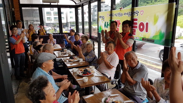 지난 21일 경기 오산시 세마동 지역사회보장협의체가 세마동 지역내 노인을 위한 여가문화생활 지원프로그램을 실시했다. 사진은 한 카페에서 다과를 즐기며, 즐거운 시간을 보내고 있는 노인들의 모습.(사진제공=오산포토)