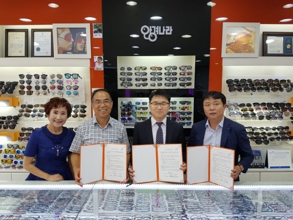 경기 화성시 병점2동 지역사회보장협의체와 안경나라 병점점은 지난 22일 안경나라 병점점에서 ‘아름다운 나눔의 실천, 희망나눔’ 제1호 협약을 체결했다. 사진은 관계자들이 기념촬영을 하는 모습.(사진제공=화성시청)