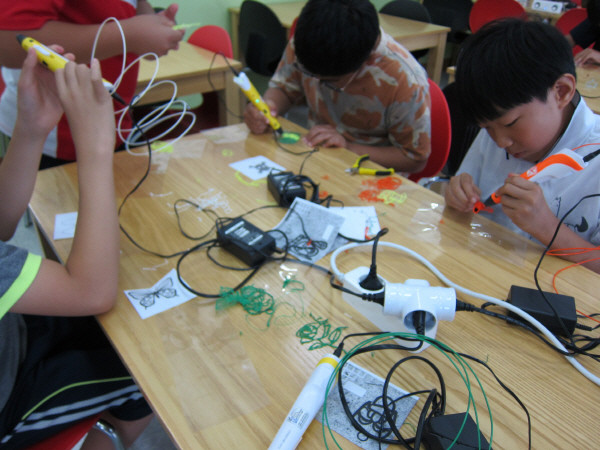 인천 계양구청소년수련관 '청소년 방과 후 아카데미 누리보듬터'에서는 한화 예술더하기에서 주최하는 프로그램에 참가해 '전통 탈 만들기 체험'을 실시했다. 사진은 학생들이 3D프린팅 펜으로 탈을 만드는 모습.(사진제공=계양구청)