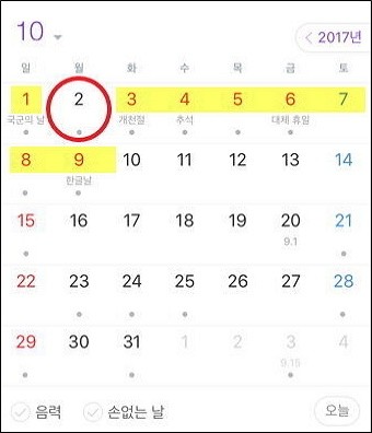 오늘 24일 한 매체가 지난 23일 청와대와 정부가 국민에게 충분한 재충전 시간을 주겠다는 문재인 대통령의 방침에 따라 10월 2일 월요일을 임시공휴일로 지정하기로 했다고 보도한 가운데 올 추석은 9월 30일(토)부터 10월 9일(한글날·월)까지 최장 열흘간 황금 연휴가 가능하게 된 것.