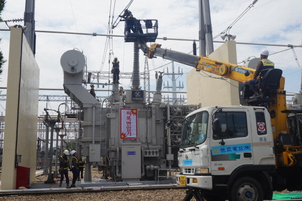 | ▲ 서대구변전소 전력설비 긴급복구 훈련 모습.(사진제공=한전) | ||