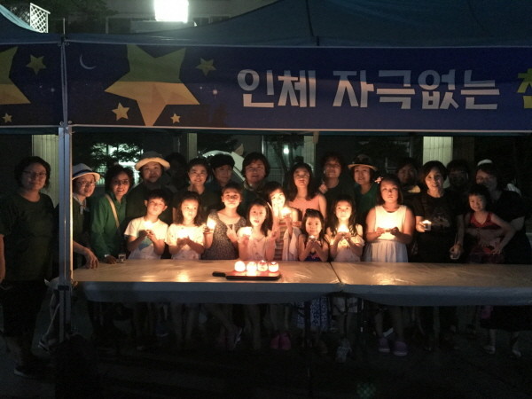 지난 22일 양평군은 녹색성장위원회와 함께 휴먼빌아파트 일원에서 ‘에너지의 날 기념행사’를 실시했다. 사진은 소등행사에 동참한 주민들이 초를 켜고 기념촬영을 하는 모습.(사진제공=양평군청)