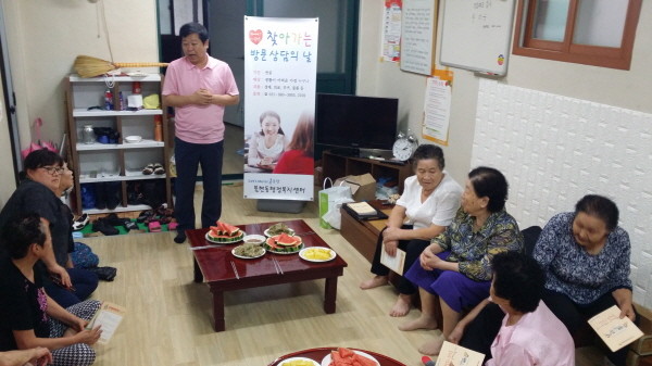 경기 동두천시 불현동지역사회보장협의체는 지난 24일 조흥아파트 경로당에서 ‘8월 찾아가는 복지 상담의 날’을 운영했다. 사진은 협의체 관계자가 노인들에게 장기요양제도와 노인돌봄종합서비스 신청 방법 등을 설명하는 모습.(사진제공=동두천시청)