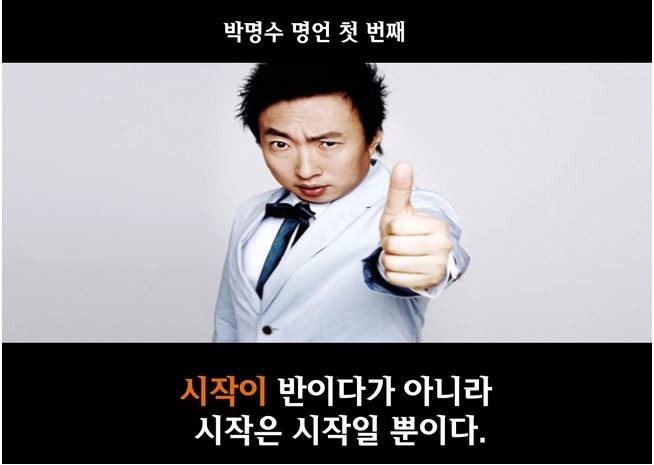 먼저 박명수 명언 첫 번째는 "시작이 반이다가 아니라 시작은 시작일 뿐이다. "현실을 직시하기에 딱 좋은 말이다.