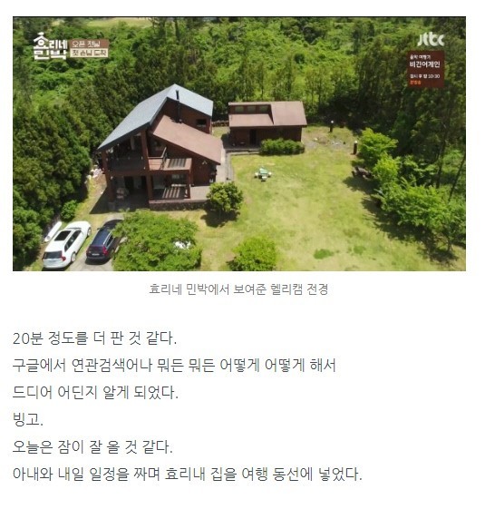 이어 그는 “20분 동안 웹서핑을 하는데 이효리의 집은 정보의 바다 어디에 꼭꼭 숨어있었다”며 “20분 정도를 더 팠다. 드디어 어딘지 알게 되었다. 빙고. 아내와 내일 일정을 짜며 효리네 집을 여행 동선에 넣었다”는 글을 썼다.