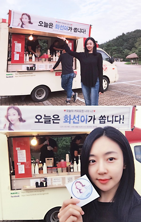 배우 나야가 지난 30일 영화 ‘검객’ 촬영장인 경상북도 영주 선비촌에 커피차를 선물하며 동료들의 사기를 북돋웠다.
