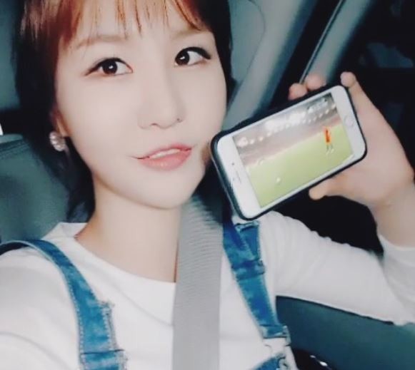 대한민국 대 이란 보면서 귀가 다 끝날때까지 집에 못 도착할 듯 즐겨라 대한민국❤ 즐겨라 귀갓길❤ 아쟛 득점 고고"라는 글과 함께 한 장의 사진을 게재했다.