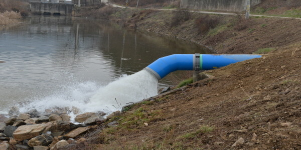| ▲ 임시관로에서 한강물이 콸콸 쏟아지고 있다 | ||