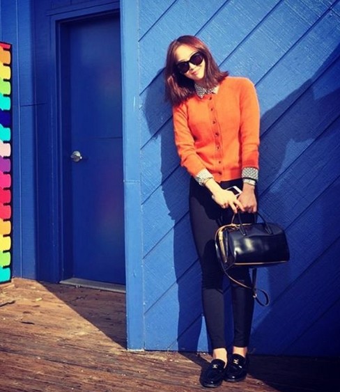 김다솜은 과거 자신의 인스타그램에 "눈부셔"라는 짧은 글과 함께 사진 두 장을 게재했다. 공개된 사진 속 김다솜은 실외에서 귀여운 오렌지색 니트 티셔츠를 입고 손키스 포즈를 취하고 있다.